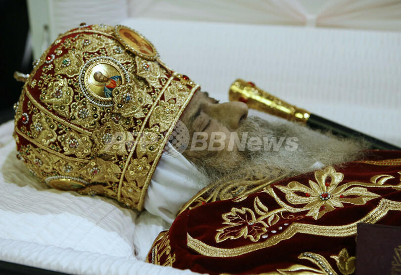 写真はサンマルコ大聖堂で公開されたシェヌーダ3世の遺体(2012年3月20日撮影)。(c)AFP