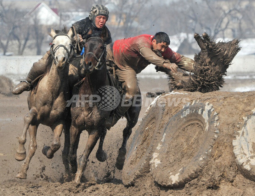 ニュース ライフ 詰め物入りのヒツジの皮で競う騎馬競技「ブズカシ」、キルギス 2012年3月21日 15:27 発信地:ビシケク/キルギス [ ロシア・CIS キルギス ] このニュースをシェア ‹ › ❮ 3/15 ❯ キルギスの首都ビシケク(Bishkek)で19日と20日、ウマに乗り詰め物の入ったヒツジの皮を井戸に投げて得点を競う中央アジアの伝統競技「ブズカシ(Buzkashi)」が開催された。写真は熱戦を繰り広げる選手ら(2012年3月20日撮影)。(c)AFP/VYACHESLAV OSELEDKO 画像作成中 ! 【3月21日 AFP】キルギスの首都ビシケク(Bishkek)で19日と20日、ウマに乗り詰め物の入ったヒツジの皮を井戸に投げて得点を競う中央アジアの伝統競技「ブズカシ(Buzkashi)」が開催された。(c)AFP ライフ 一覧へ> メディア・報道関係・法人の方向け 写真・動画 購入のお問合せ>
