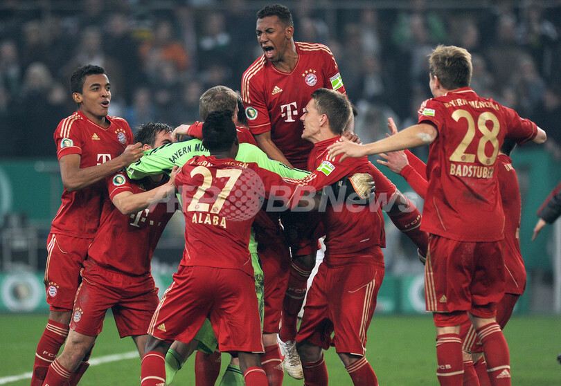 【3月22日 AFP】サッカードイツカップ2011-12(German Cup 2011-12)は21日、準決勝が行われ、ボルシア・メンヘングラッドバッハ(Borussia Moenchengladbach)とのペナルティーキック(PK)戦を4-2で制したバイエルン・ミュンヘン(Bayern Munich)が決勝に進出した。
