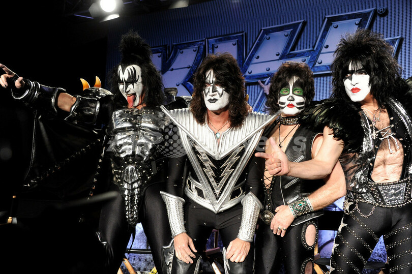 【3月21日 AFP】米ロックバンドのキッス(KISS)とモトリー・クルー(Motley Crue)は20日、7~9月に大規模なツアーを共同で開催すると、米カリフォルニア(California)州ロサンゼルス(Los Angeles)のハリウッド・ルーズベルト・ホテル(Hollywood Roosevelt Hotel)にて発表した。(c)AFP/Getty Images