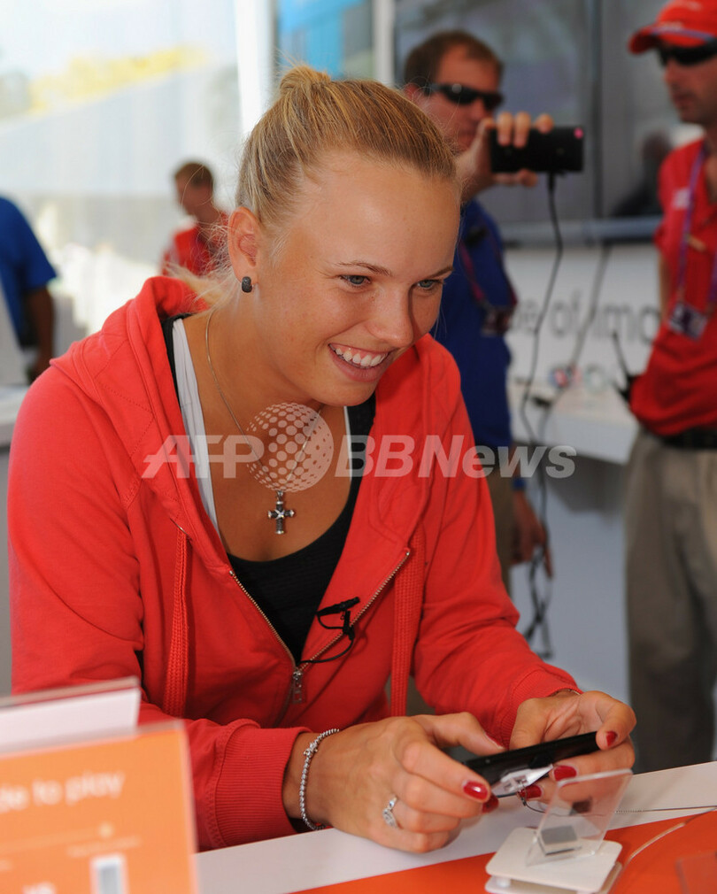 コンピューターゲームをするカロリーネ・ボズニアツキ(2012年3月23日撮影)。(c)AFP/Getty Images/Michael Regan