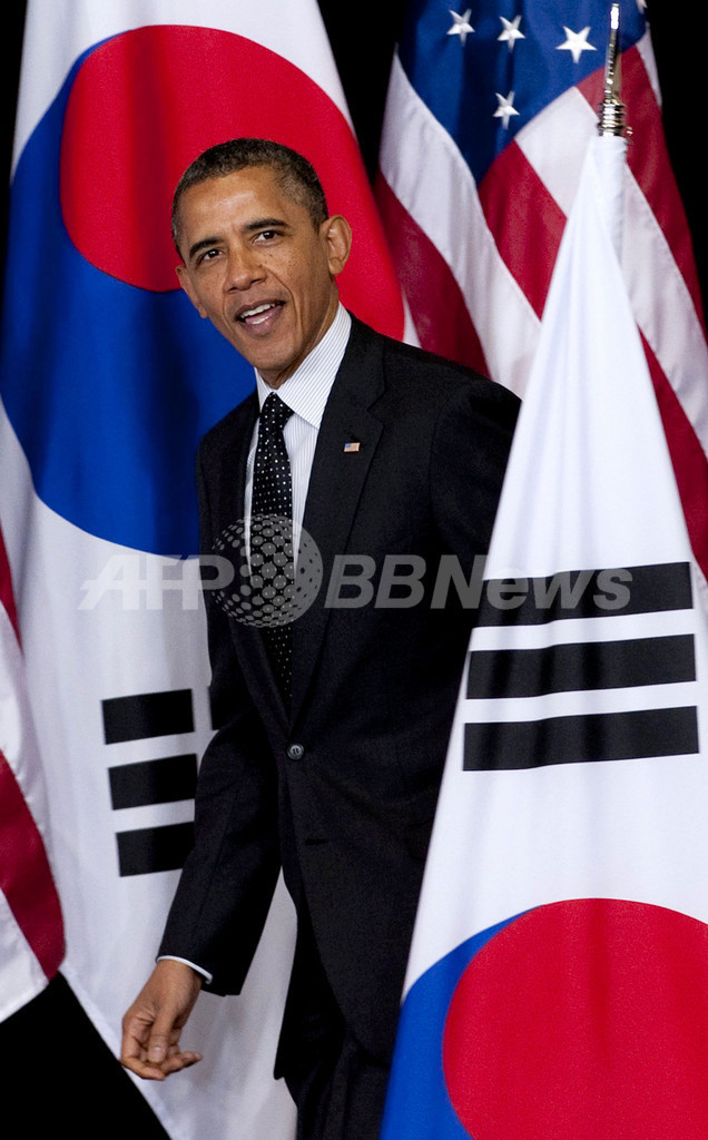 【3月26日 AFP】韓国を訪問中のバラク・オバマ(Barack Obama)米大統領は26日、ソウル(Seoul)の韓国外国語大学(Hankuk University of Foreign Studies)で講演し、北朝鮮の新政権に対し「平和を追求する勇気」を持つことを強く求める一方、イランに対しては核開発問題をめぐる国際社会からの孤立に終止符を打つ期限は迫っていると警告した。
