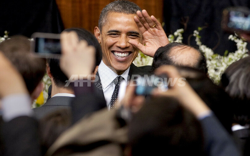 【3月26日 AFP】韓国を訪問中のバラク・オバマ(Barack Obama)米大統領は26日、ソウル(Seoul)の韓国外国語大学(Hankuk University of Foreign Studies)で講演し、北朝鮮の新政権に対し「平和を追求する勇気」を持つことを強く求める一方、イランに対しては核開発問題をめぐる国際社会からの孤立に終止符を打つ期限は迫っていると警告した。