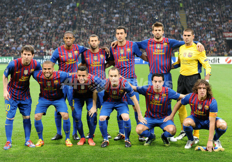 試合前の写真撮影に臨むFCバルセロナの選手(2012年3月28日撮影)。(c)AFP/ALBERTO LINGRIA