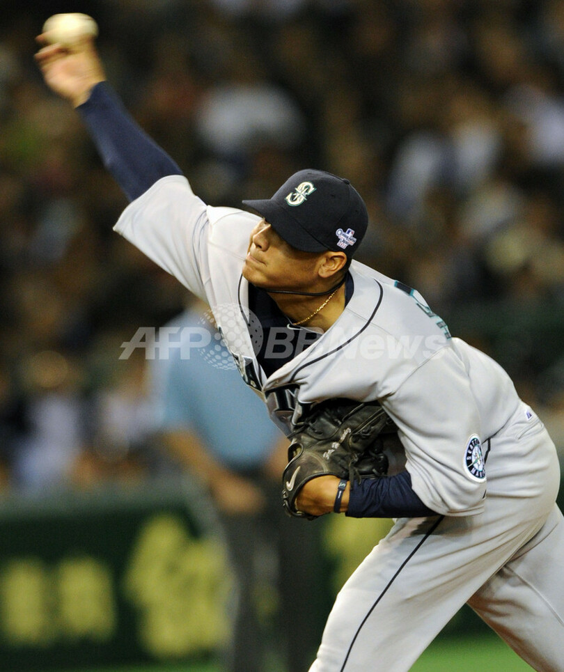 マリナーズの先発フェリックス・ヘルナンデス(Felix Hernandez)は、8回を投げ5安打1失点、6つの三振を奪った。(c)AFP