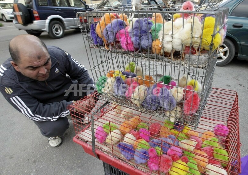 ニュース ライフ こぼれ話 もうすぐイースター、僕らの出番です 2012年3月29日 12:29 発信地:ベイルート/レバノン [ 中東・北アフリカ レバノン ] このニュースをシェア ‹ › ❮ 2/7 ❯ イエス・キリスト(Jesus Christ)の復活を記念する復活祭(イースター、Easter)を約1週間後に控え、レバノンの首都ベイルート(Beruit)の市場では、イースターを祝う伝統の「色つきひよこ」が売られている(2012年3月28日撮影)。(c)AFP 画像作成中 ! 【3月29日 AFP】イエス・キリスト(Jesus Christ)の復活を記念する復活祭(イースター、Easter)を約1週間後に控え、レバノンの首都ベイルート(Beruit)の市場では、イースターを祝う伝統の「色つきひよこ」が売られている。(c)AFP ライフ 一覧へ> メディア・報道関係・法人の方向け 写真・動画 購入のお問合せ>