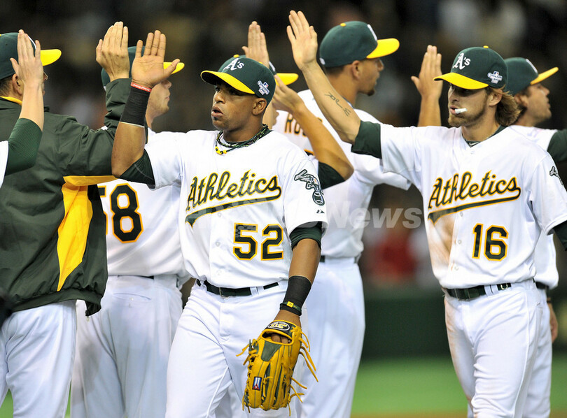続くジョシュ・レディック(Josh Reddick)、8回にもジョニー・ゴメス(Jonny Gomes)がそれぞれソロ本塁打を放ち追加点を挙げたアスレチックスは、投げては先発のバートロ・コロン(Bartolo Colon)が4回までマリナーズ打線を無安打に抑えるなど、8回を投げ3安打1失点の好投を見せた。