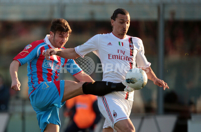 ミランは前半34分にロビーニョ(Robinho)のゴールで先制したものの、後半13分にカターニアのニコラス・スポッリ(Nicolas Spolli)に同点ゴールを許した。