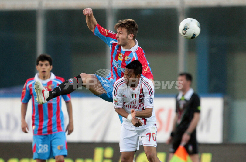 ミランは前半34分にロビーニョ(Robinho)のゴールで先制したものの、後半13分にカターニアのニコラス・スポッリ(Nicolas Spolli)に同点ゴールを許した。
