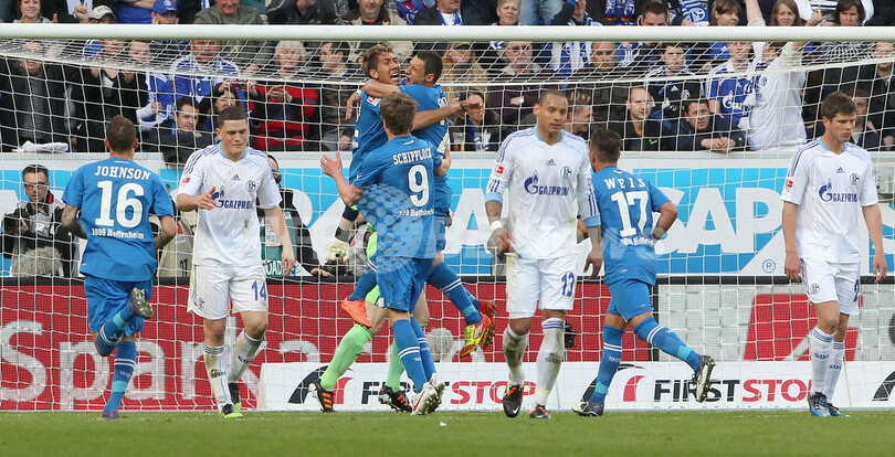 また、3位のシャルケ04(Schalke04)は1-1で1899ホッフェンハイム(1899 Hoffenheim)と引き分けた。前半30分、セヤド・サリホヴィッチ(Sejad Salihovic)が獲得したペナルティーキック(PK)を決めるも、後半35分にシャルケにもPKが与えられ、これをクラース・ヤン・フンテラール(Klaas-Jan Huntelaar)が決めてドローに持ち込んだ。