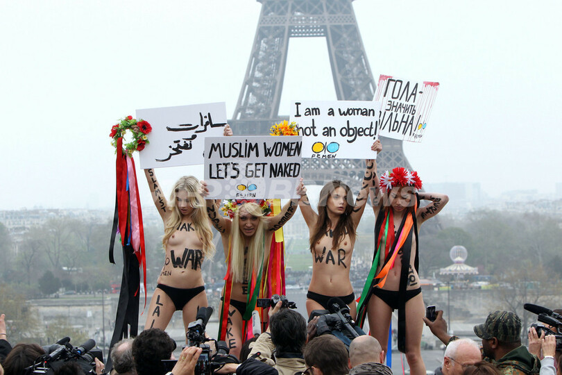 トップレスでイスラム教社会の「女性差別」に抗議、パリ