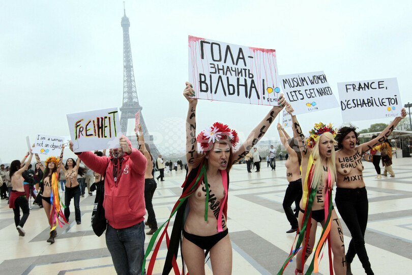 トップレスでイスラム教社会の「女性差別」に抗議、パリ