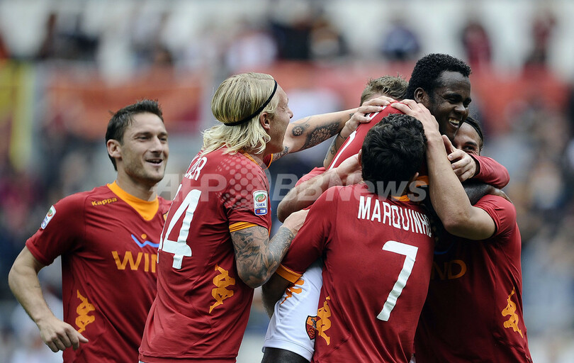 勝ち点3を手にしたローマは、ライバルのラツィオとの勝ち点差を4に縮め、5位のウディネーゼには勝ち点差1と迫る6位に浮上し、そのローマを勝ち点差3で追うインテルが7位につけている。両チームともヨーロッパリーグ2012-13(UEFA Europa League 2012-13)出場権獲得を目指して残り8試合に挑む。(c)AFP/Barnaby Chesterman