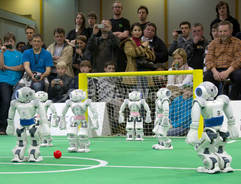ニュース 環境・科学 体張ってシュートをキャッチ!「ロボカップ」ドイツオープン開催 2012年4月2日 16:04 発信地:マクデブルク/ドイツ [ ヨーロッパ ドイツ ] このニュースをシェア ‹ › ❮ 2/8 ❯ ドイツ東部マクデブルク(Magdeburg)で3月31日、自立移動型ロボットによる競技会「ロボカップ(Robo-Cup)」のドイツ大会「ロボカップ・ドイツオープン2012」が開催され、約200チームが参加した。写真は、ロボカップのサッカー競技「標準プラットフォーム・リーグ」の準決勝で、観客が見守るなかでプレーするロボットたち(2012年3月31日撮影)。(c)AFP/JENS WOLF 画像作成中 ! 【4月2日 AFP】ドイツ東部マクデブルク(Magdeburg)で3月31日、自立移動型ロボットによる競技会「ロボカップ(Robo-Cup)」のドイツ大会「ロボカップ・ドイツオープン2012」が開催され、約200チームが参加した。(c)AFP 環境・科学 一覧へ> メディア・報道関係・法人の方向け 写真・動画 購入のお問合せ>