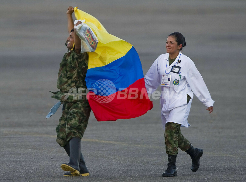 【4月3日 AFP】南米コロンビアで2日、左翼ゲリラ「コロンビア革命軍(Revolutionary Armed Forces of Colombia、FARC)」に12年以上も人質にされていた警察官や兵士10人が解放された。解放された人質が到着した空港で、赤十字国際委員会(International Committee of the Red Cross)が発表した。