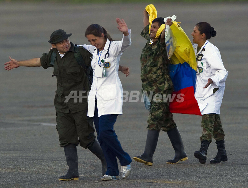 【4月3日 AFP】南米コロンビアで2日、左翼ゲリラ「コロンビア革命軍(Revolutionary Armed Forces of Colombia、FARC)」に12年以上も人質にされていた警察官や兵士10人が解放された。解放された人質が到着した空港で、赤十字国際委員会(International Committee of the Red Cross)が発表した。