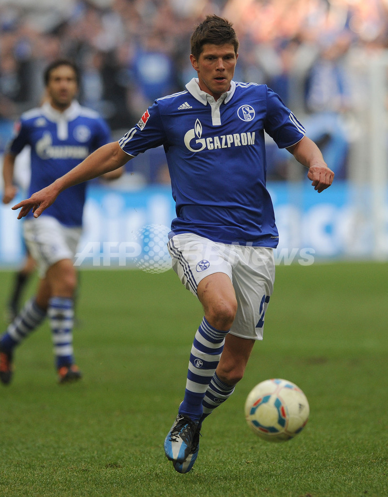 ボールに走り込むシャルケのクラース・ヤン・フンテラール(Klaas-Jan Huntelaar、2012年4月8日撮影)。(c)AFP/PATRIK STOLLARZ