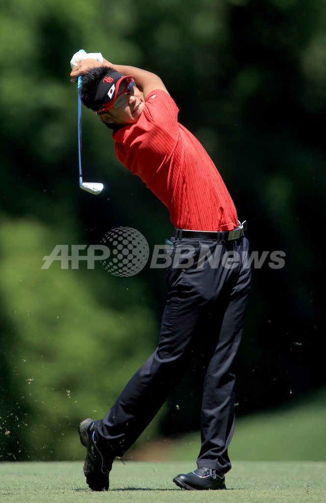 5番ホールでショットを放つ松山英樹(2012年4月8日撮影)。(c)AFP/Getty Images/David Cannon