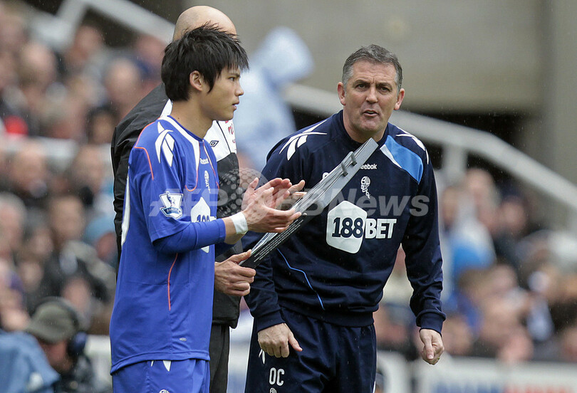 後半34分に途中出場を果たすボルトン・ワンダラーズの宮市亮(Ryo Miyaichi、2012年4月9日撮影)。(c)AFP/GRAHAM STUART