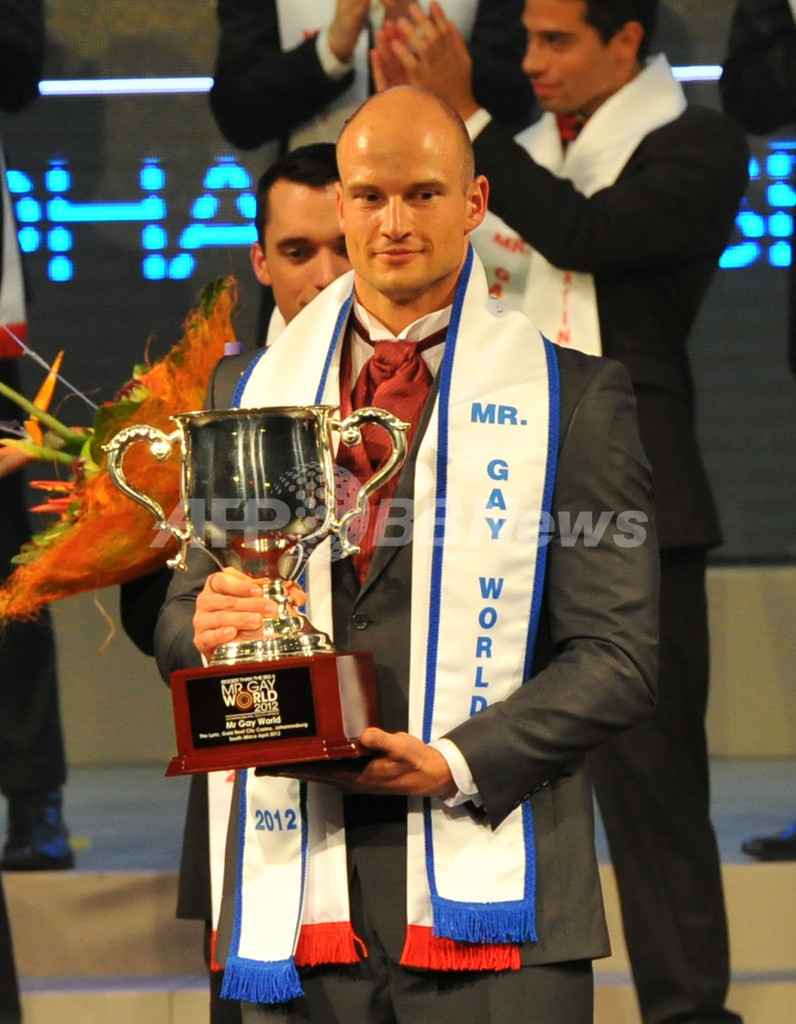 【4月10日 AFP】南アフリカのヨハネスブルク(Johannesburg)で8日、「ミスター・ゲイ・ワールド(Mr Gay World)」2012年大会の決勝、グランドフィナーレが開かれた。決勝に進出した世界各国代表25人の中から、ニュージーランド代表のアンドレアス・ダーレス(Andreas Derleth)さん(32)が2012年ミスター・ゲイ・ワールドの栄冠に輝いた。(c)AFP