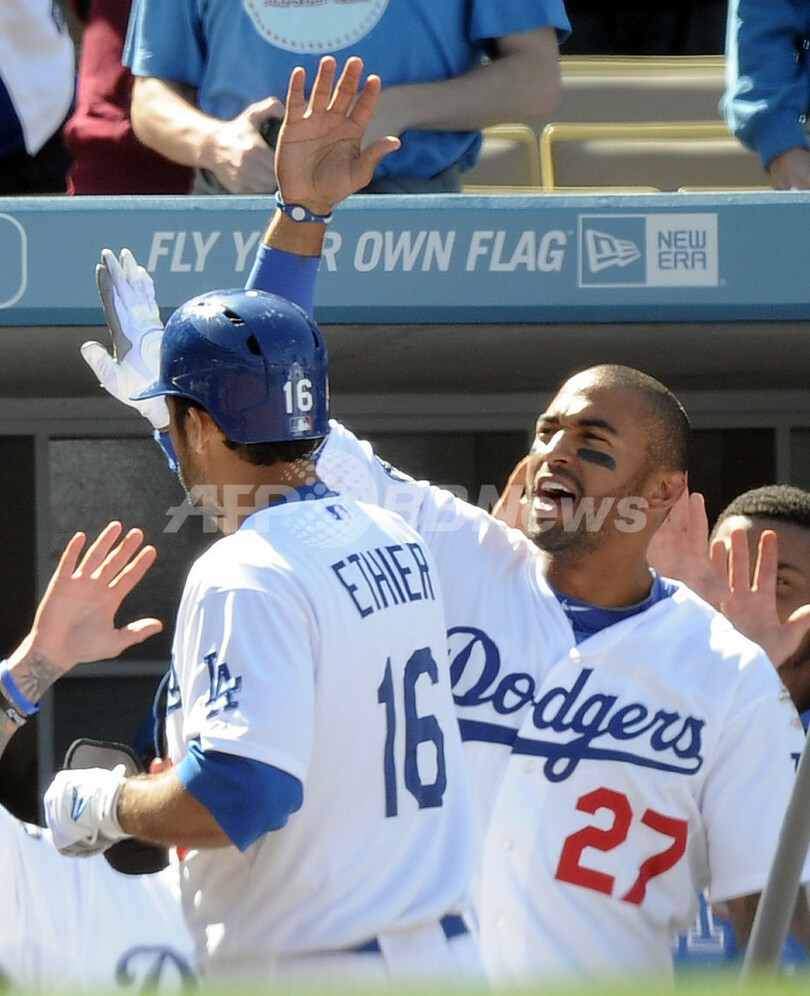 ドジャースは、2011年6月にオーナーのフランク・マッコート(Frank McCourt)氏が球団の破産を申請。11月にはMLB側との法廷での争いを避けるため球団売却が決定し、今年3月には米プロバスケットボール協会(NBA)の元スター選手、マジック・ジョンソン(Magic Johnson)氏が名を連ねる投資グループに20億ドル(約1660億円)で売却された。今シーズンは、ドジャースのマコート氏の体制からの移行が期待されている。(c)AFP