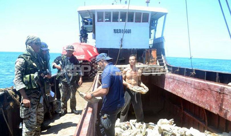 フィリピン海軍は最新鋭の艦船を現場に派遣し、中国人船員らの逮捕を試みたが、中国も10日になって監視船2隻を派遣し、フィリピン艦船による漁船への接近を阻止。フィリピン艦船と中国の監視船がたがいににらみ合い、両国政府が互いを非難しあう事態が続いていた。(c)AFP/Jason Gutierrez