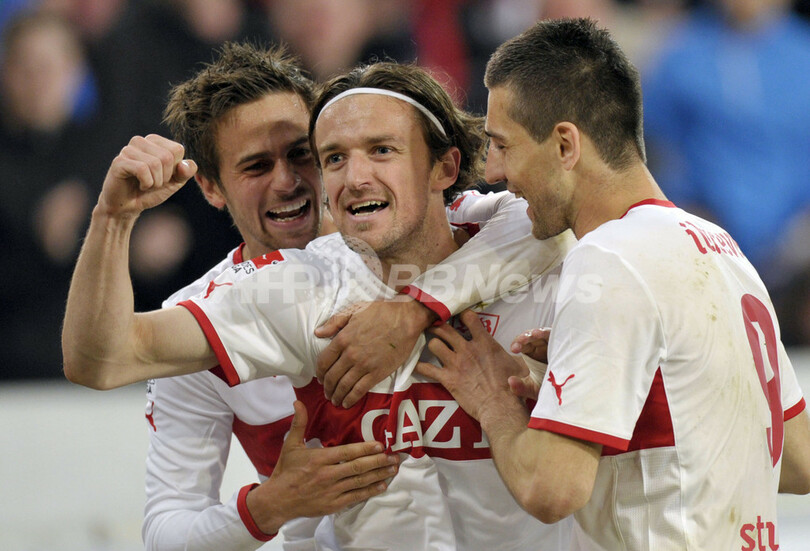 13日に行われた試合では、5位のVfBシュツットガルトが4-1でヴェルダー・ブレーメンに快勝し、12-13シーズンの欧州チャンピオンズリーグ出場権獲得に望みをつないだ。(c)AFP/Ryland James
