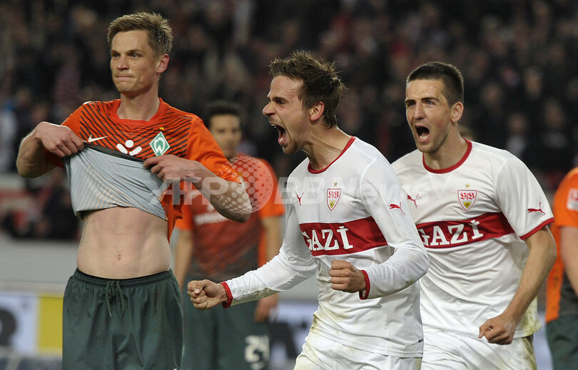 13日に行われた試合では、5位のVfBシュツットガルトが4-1でヴェルダー・ブレーメンに快勝し、12-13シーズンの欧州チャンピオンズリーグ出場権獲得に望みをつないだ。(c)AFP/Ryland James