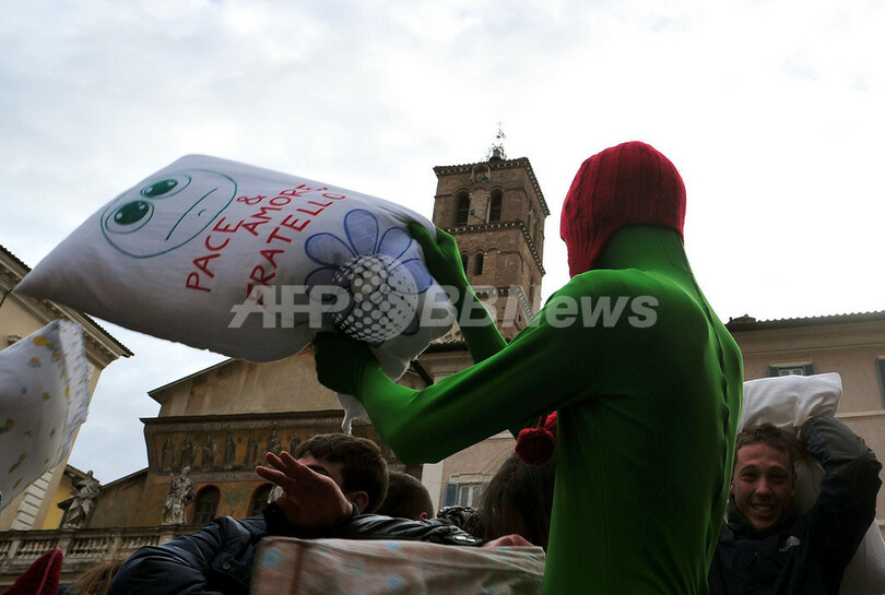 ローマでも「ピローファイト」、武器は羽根枕 イタリア