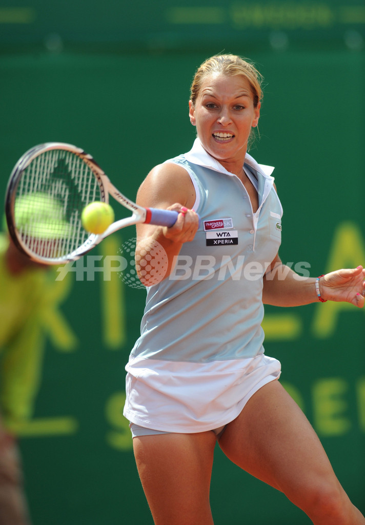 リターンを打つドミニカ・チブルコワ(2012年4月15日撮影)。(c)AFP/SERGIO CARMONA