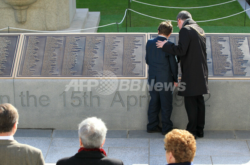 【4月16日 AFP】英豪華客船タイタニック(Titanic)号の沈没からちょうど100年目となった15日、世界各地の洋上や陸上で犠牲となった約1500人を追悼する行事が行われた。