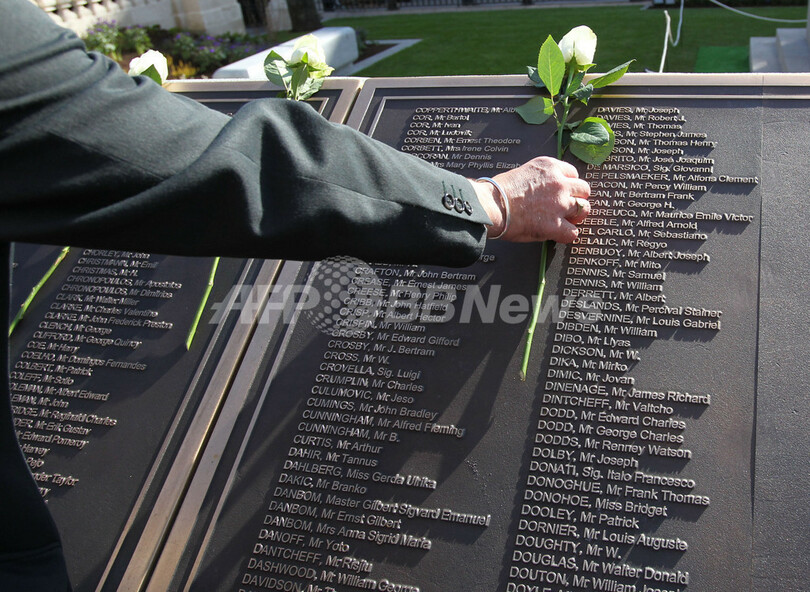【4月16日 AFP】英豪華客船タイタニック(Titanic)号の沈没からちょうど100年目となった15日、世界各地の洋上や陸上で犠牲となった約1500人を追悼する行事が行われた。