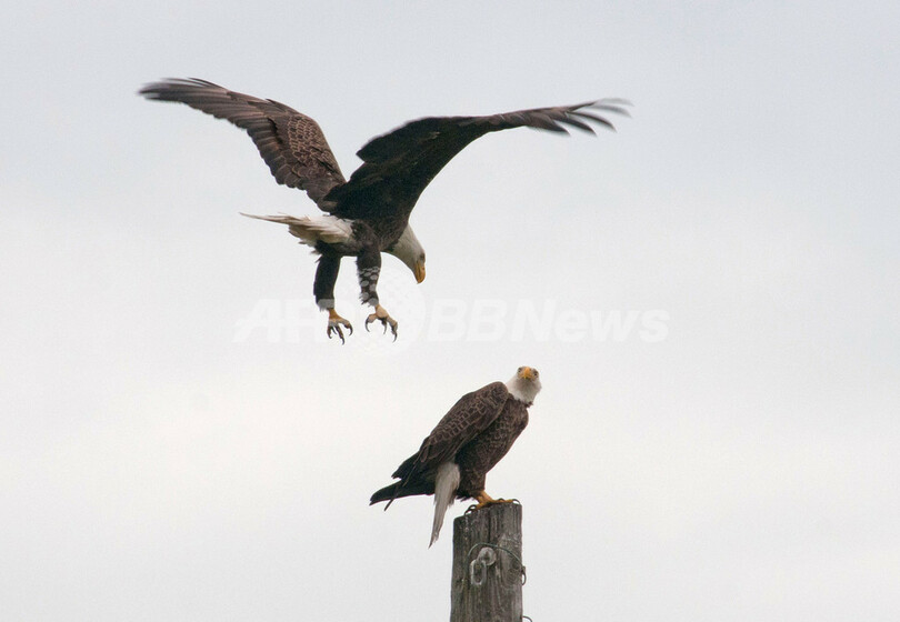 そのポールは俺のだ!米ケネディ宇宙センターでワシ2羽がバトル