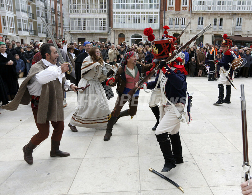 【4月16日 AFP】スペイン北部ブルゴス(Burgos)で15日、皇帝ナポレオン・ボナパルト(Napoleon Bonaparte)率いる仏軍の占領下にあったスペインで初めて起きた歴史的な市民蜂起が再現するイベントが開催された。