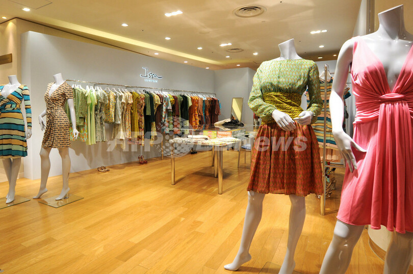 ブランドにとって世界初のショップとなる三越銀座店では、イッサ ロンドンの魅力が伝わるラインアップ。現在店頭では、12年春夏コレションと12年プレ・フォールコレションを展開。パイナップルやスイカなど南国のフルーツをモチーフにしたカラフルでポップなプリントドレス、太陽の光に映える明るいカラーパレットのアイテムのほか、同店限定ドレスが並ぶ。