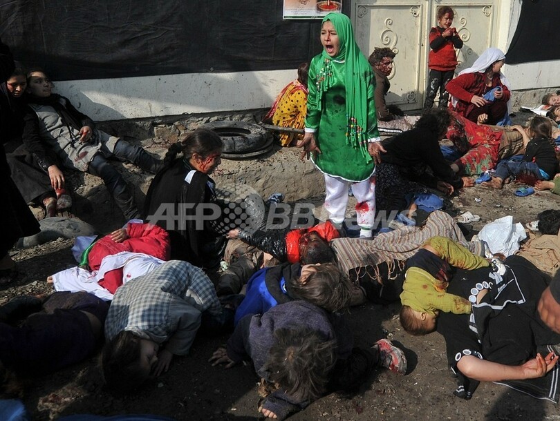 ピュリツァー賞(Pulitzer Prize)を受賞した写真。アフガニスタンの首都カブール(Kabul)で前年12月6日に起きた自爆攻撃の直後、死体の中で叫ぶ少女、タラナ・アクバリ(Tarana Akbari)ちゃん(2011年12月6日撮影)。(c)AFP/Massoud HOSSAINI