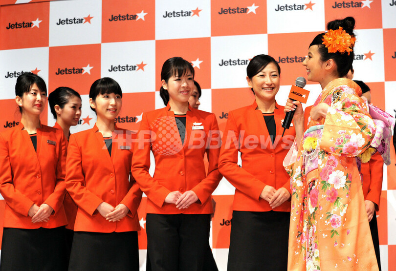 【4月17日 AFP】格安航空会社「ジェットスター(Jetstar Group)」の国内線就航記念イベントが17日、都内で行われた。