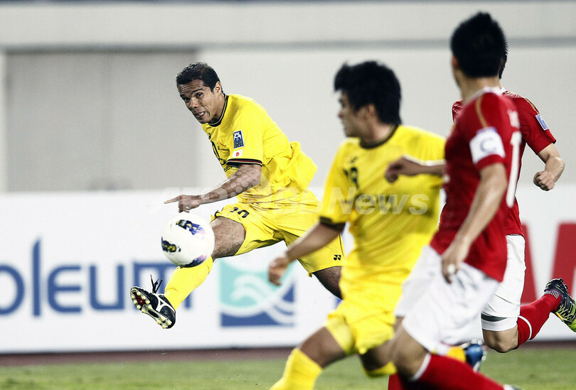 シュートを狙う柏レイソルのレアンドロ・ドミンゲス(Leandro Domingues、左、2012年4月17日撮影)。(c)AFP