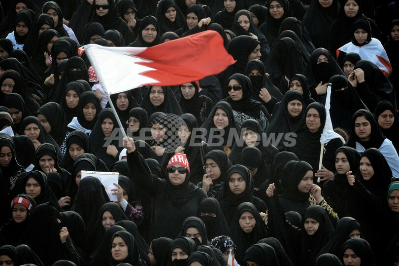 デモに参加するイスラム教シーア派(Shiite)の女性(2012年4月17日撮影)。(c)AFP