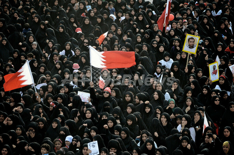 デモに参加するイスラム教シーア派(Shiite)の女性(2012年4月17日撮影)。(c)AFP