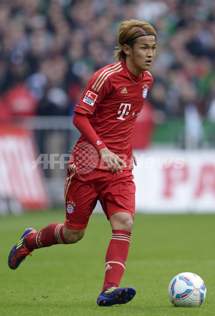 ボールをキープするバイエルン・ミュンヘンの宇佐美貴史(Takashi Usami、2012年4月21日撮影)(c)AFP/OLIVER HARDT