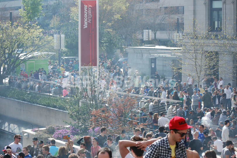 参加者が最も多いとされるバンクーバーのメディアやデモの主催者によると、この日は1万~1万5000人が参加。多くは若者たちで、日なたでくつろぎながらバンドの演奏を聞いたり、マリファナを吸ったり、通りに出た屋台で買ったスナックをほおばりながら1日を過ごした。