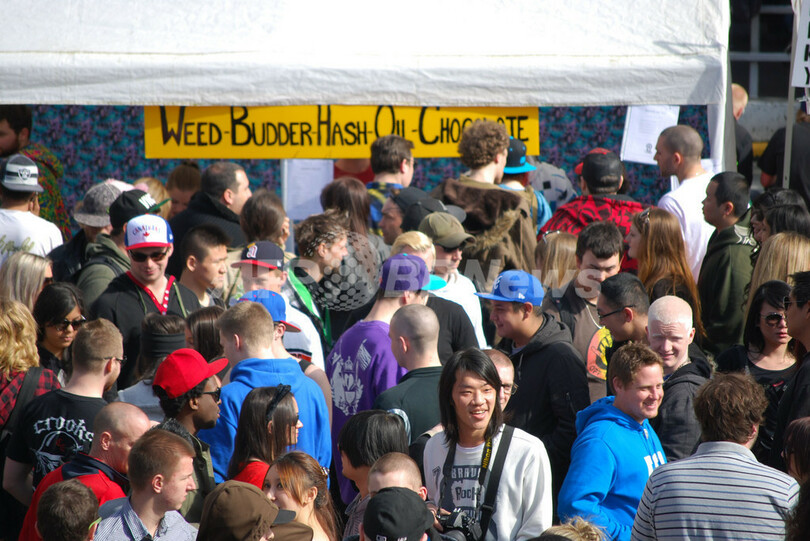 参加者が最も多いとされるバンクーバーのメディアやデモの主催者によると、この日は1万~1万5000人が参加。多くは若者たちで、日なたでくつろぎながらバンドの演奏を聞いたり、マリファナを吸ったり、通りに出た屋台で買ったスナックをほおばりながら1日を過ごした。