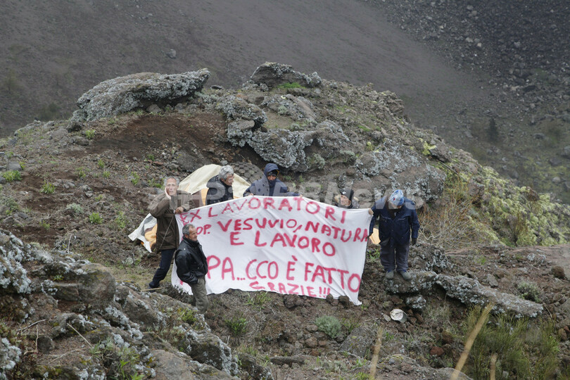 【4月24日 AFP】イタリア・ナポリ(Naples)近くにあるベズビオ(Vesuvius)火山で23日、勤めていた地元観光団体の閉鎖およびその対応に抗議するため、元従業員の男性6人が火口付近へ降りてデモ活動を行った。