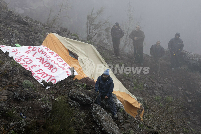 ベズビオ火山の火口で抗議、地元観光団体の閉鎖受け イタリア