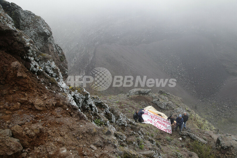ベズビオ火山の火口で抗議、地元観光団体の閉鎖受け イタリア