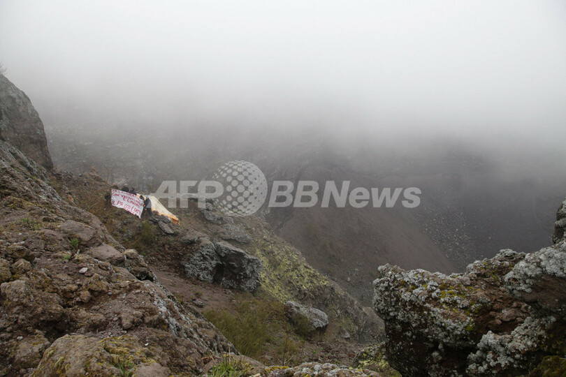 ベズビオ火山の火口で抗議、地元観光団体の閉鎖受け イタリア