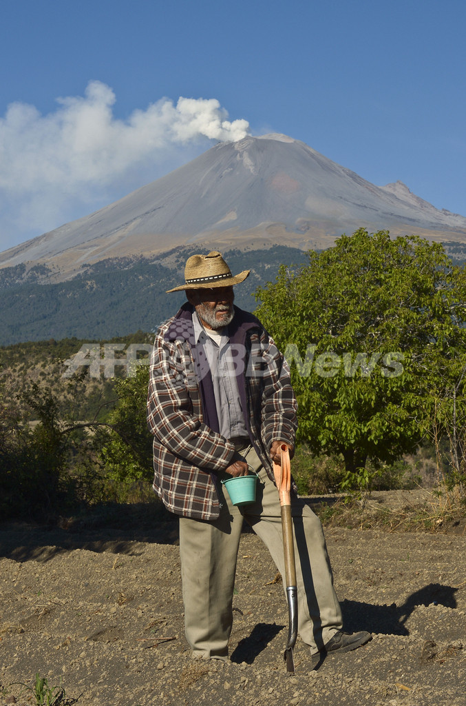 写真は、ポポカテペトル山に近いメキシコ中部プエブラ(Puebla)州Santiago Xalitxintlaの農業従事者(2012年4月24日撮影)。(c)AFP/RONALDO SCHEMIDT
