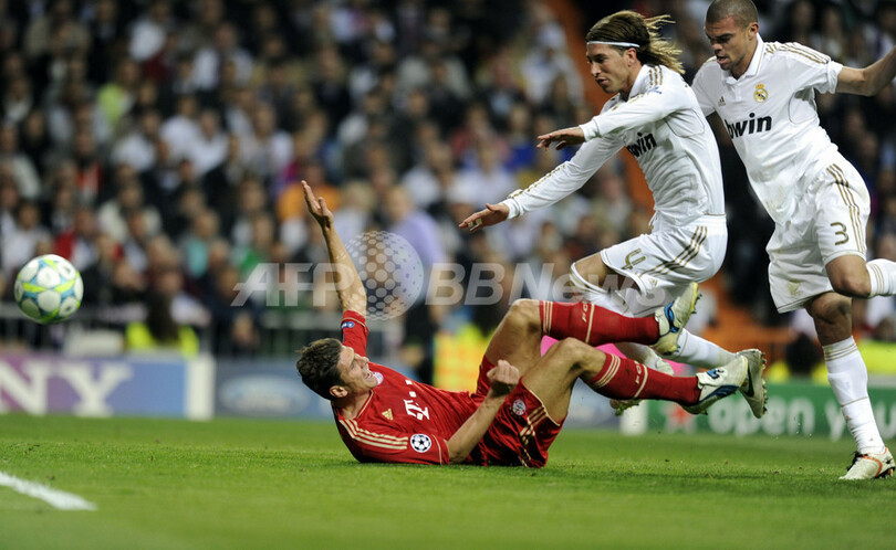 しかし同27分、バイエルンはマリオ・ゴメス(Mario Gomez)がレアルのペペ(Pepe)に倒されてPKを獲得すると、これをアリエン・ロッベン(Arjen Robben)が決めて2試合合計3-3の振り出しに戻した。