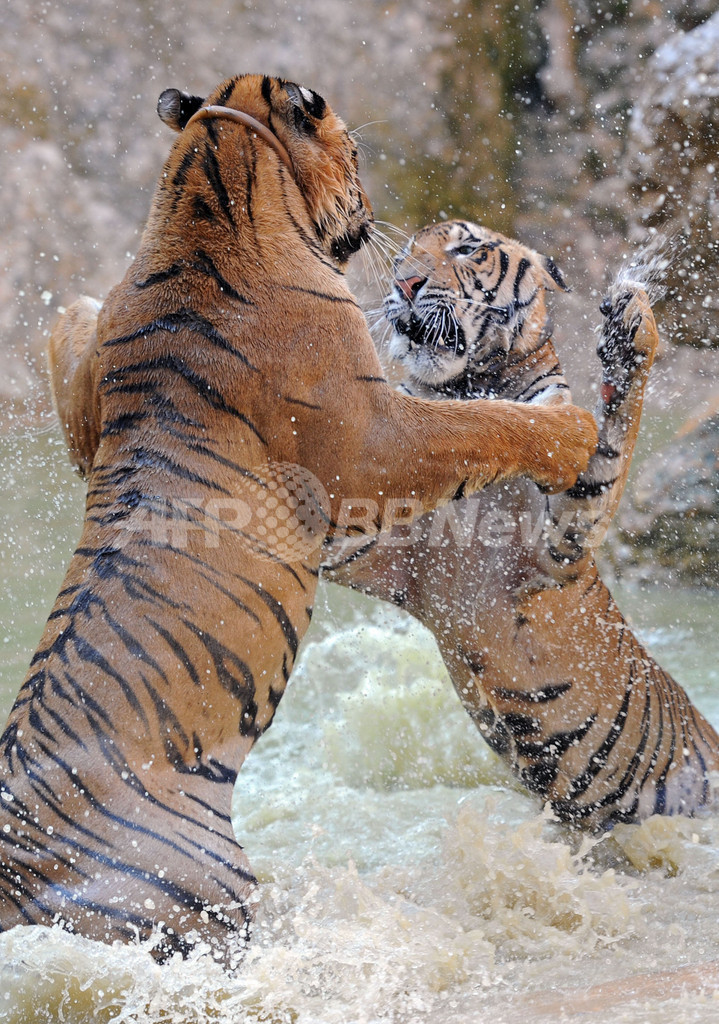 【4月26日 AFP】タイ西部カンチャナブリ(Karnchanaburi)県の通称「トラ寺院」では僧侶らによってトラが飼育されており、観光客も近くで触れ合うことができる。タイは、絶滅が危惧されるトラが生息する13か国のうちの1つで、密輸の拠点ともなっている。全世界でのトラの生息数は100年前の10万頭から現在は3200頭まで減少したと推定されている。(c)AFP